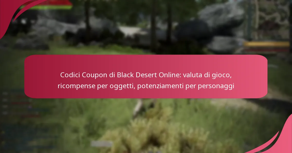 I codici coupon in Black Desert Online forniscono vari potenziamenti per i personaggi, inclusi valuta di gioco, premi in oggetti e aggiornamenti delle abilità del personaggio. Questi potenziamenti possono influenzare significativamente il gameplay migliorando le prestazioni e la progressione del personaggio.