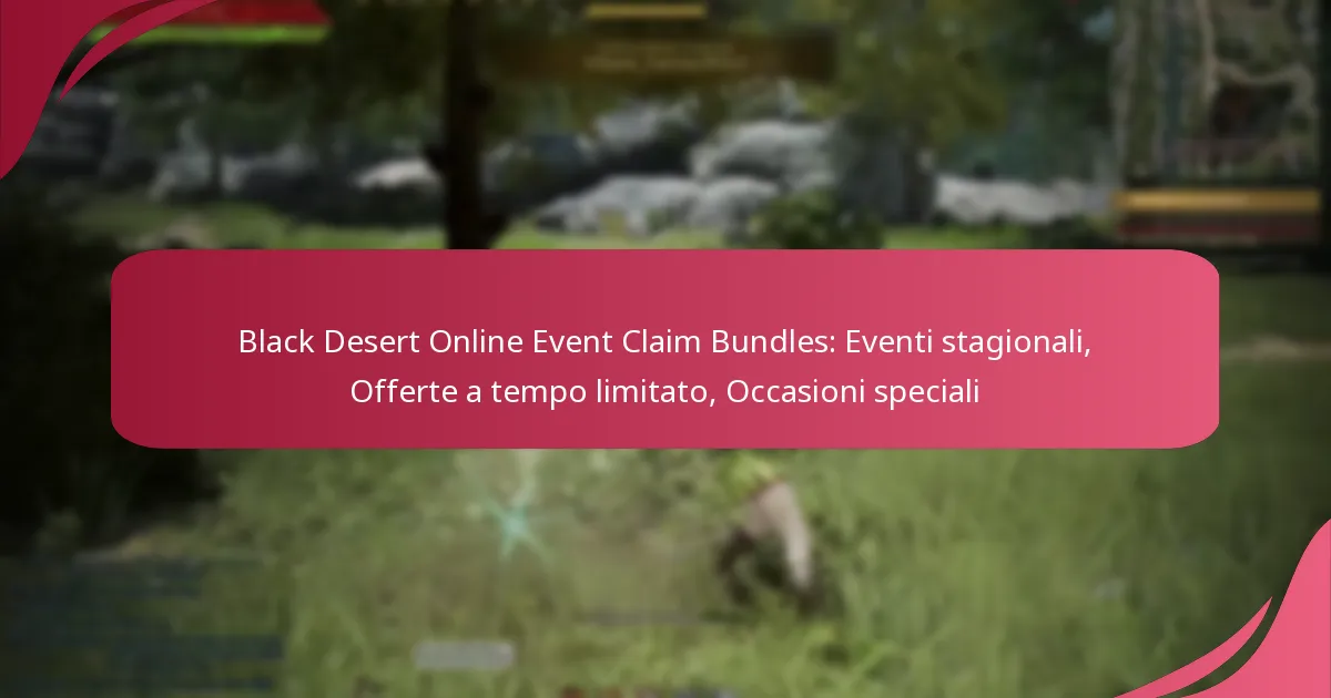Gli eventi stagionali in Black Desert Online presentano spesso pacchetti di richiesta eventi che forniscono ai giocatori ricompense e bonus unici. Questi pacchetti sono tipicamente disponibili per un periodo di tempo limitato e coincidono con festività o occasioni speciali, migliorando l’esperienza di gioco con oggetti e benefici esclusivi.